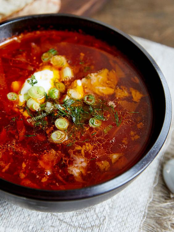 1 lb Beef: sirloin, stew meat, or whatever kind of beef you like, really (bone-in or boneless *see note) 14 cups cold water 1 Tbsp salt + more to taste 2 large or 3 medium beets, washed, peeled and grated 4 Tbsp olive oil 1 Tbsp vinegar 1 Tbsp sugar 2 Tbsp tomato sauce, or paste (or 3 Tbsp ketchup) 1 Tbsp butter